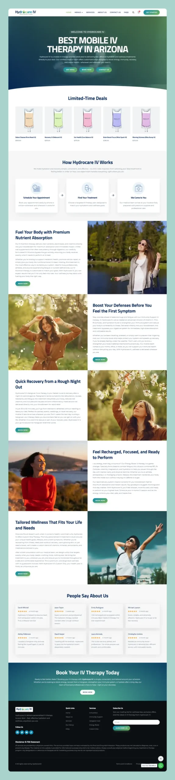Devsking built the Hydrocare IV mobile therapy site using WordPress and Elementor Pro, ensuring a pristine, healthcare-professional UI tailored to wellness clients. Every SEO detail was intentional—from keyword-rich headings like “mobile IV therapy” and “hydration treatments” to optimized meta tags and structured markup. Speed and security were ensured via image optimization, caching, HTTPS, and secure hosting. Site performance tuning delivers swift page loads. We also ran strategic SEO and paid marketing to maximize visibility and patient conversions with ease and trust.